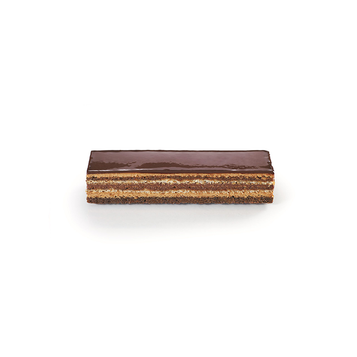 L'Opera classic French dessert: coffee and chocolate layer cake with chocolate icing. Defrost and serve.