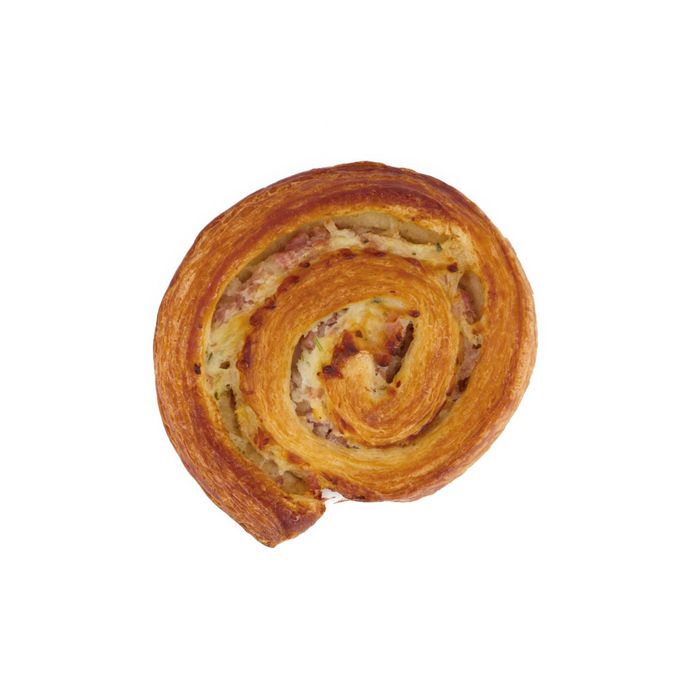 A delicious topping of ham and emmental cheese on a crunchy croissant pastry.