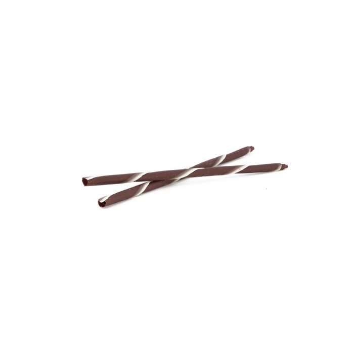 Cigarillo in dark chocolate with white spiraling stripe. 150mm long, 5mm wide