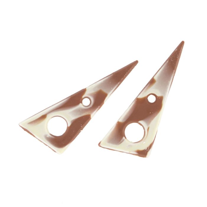 POARight angle triangle decoration in white chocolate with dark stripes. 96mm long,...