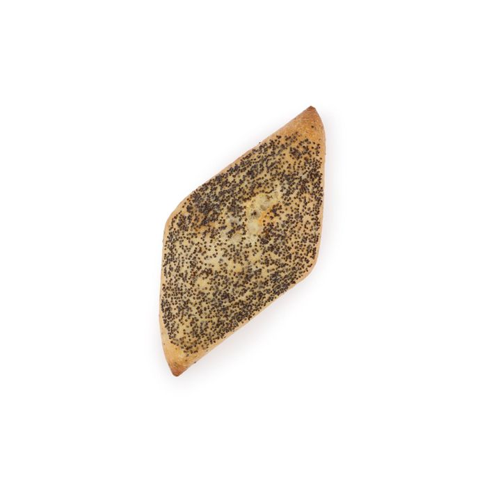White bread roll, gently crusted and flavourful, generously dusted with poppy seeds.